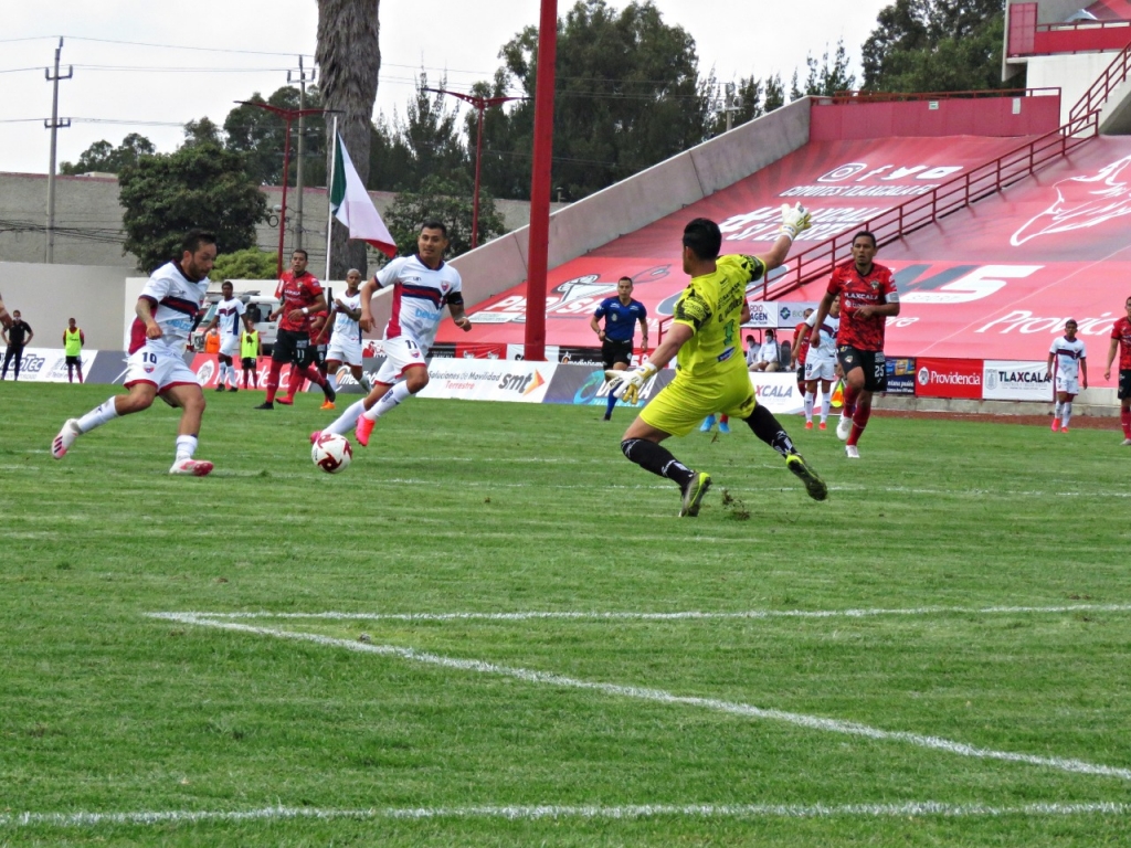El duelo comenzó con un ritmo lento debido a las muchas faltas que cometían ambos equipos; no obstante, los tlaxcaltecas mostraron mejor iniciativa en los primeros minutos con jugadas peligrosas de Luis Razo y José López. Pero al pasar lo minutos fueron los visitantes quienes empezaron a mostrar mejores credenciales con el balón en los pies, así lo demostró en dos jugadas consecutivas el delantero Lizandro “Lichagol” Echeverría, quien mando el balón al fondo de las redes al minuto 36 y 41 del primer tiempo