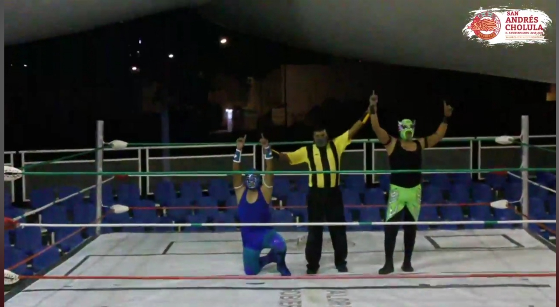 Foto: Cortesía Ángel Boy y MiniCiclón Ramírez triunfaron en función de Lucha Libre sin público en San Andrés Cholula