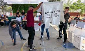 “Ya estábamos a unos instantes de instalarla, sin embargo, se conformó una comisión por parte del Consejo distrital 35 que van acompañados de la Guardia Nacional y nos comentan que van a intentar instalar la casilla, entonces nos piden que todavía los demos oportunidad”.