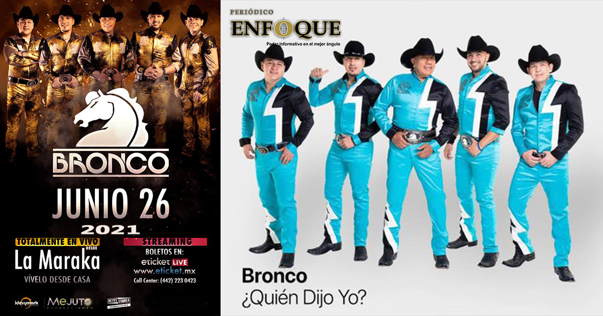 Ciudad de México. Bronco totalmente en vivo y también por Streaming desde la “Maraka” Sábado, 26 de junio de 2021 a las 09:00 P.M. (Horario de la ciudad de México).