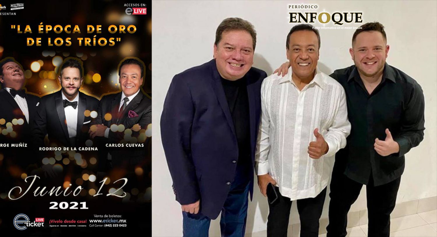 Puebla, Puebla, México. Carlos Cuevas, Jorge Muñiz y Rodrigo De La Cadena, cantando lo mejor de “La época de oro de los tríos”, streaming, sábado 12 de junio de 2021 a las 09:00 P.M. (Horario de la ciudad de México).