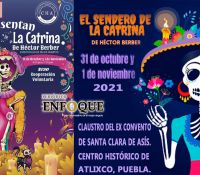 Atlixco, Puebla, México. “El sendero de la catrina", representación teatral, se presentará los días; 31 de octubre y 1ro. De noviembre de 2021 a las 06 P.M. y 07:30 P.M. (Cuatro funciones). En la Casa del Pueblo, Claustro del Ex Convento de Santa Clara de Asís. Av. Libertad No. 501 Centro histórico de Atlixco, Puebla.