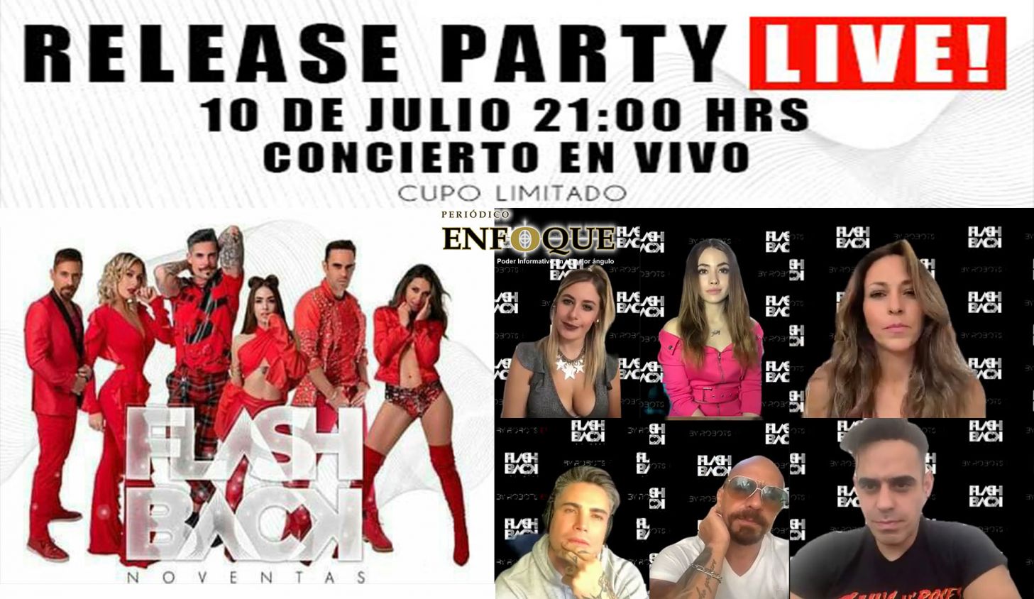 Puebla, Puebla, México. El Grupo “Flash Back Noventas” se presentará el 10 de julio de 2020 vía Streaming, transmisión en vivo por medio de econcerts.tv desde la Ciudad de México a las 09:00 P.M. (Entrevista).