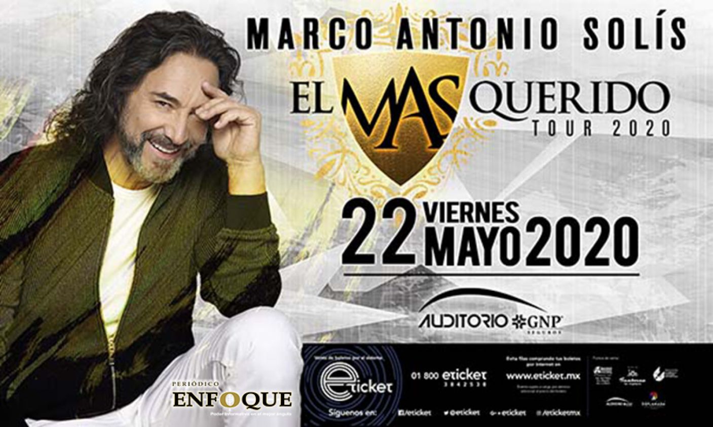 Puebla, Puebla. Marco Antonio Solís se presentará con su tour “El Más Querido”, el próximo viernes 22 de mayo de 2020 en el Auditorio GNP Seguros.