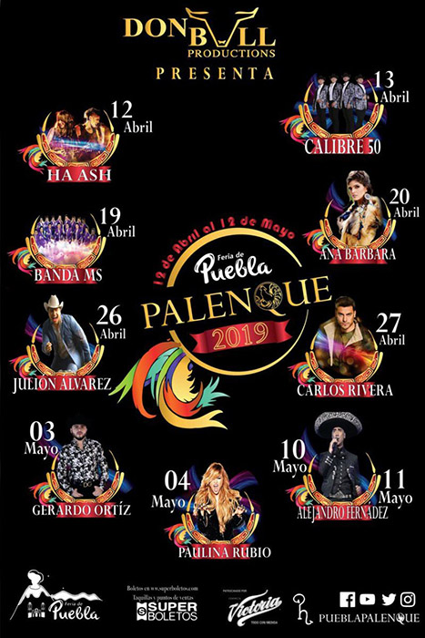 Puebla, Pue. Palenque de Puebla 2019 en el Centro Expositor, estos son los precios y zonas con la cartelera completa de los artistas y fechas respectivas. Venta de boletos por el sistema: www.superboletos.com