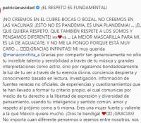 María Conchita Alonso; Exijo respeto, como yo a ustedes los voy a respetar, tengo muchos amigos que se han vacunado, haga de su gana lo que les dé con su cuerpo, yo hago lo que quiero hacer con mi cuerpo. Yo ni siquiera me he puesto, ni una vez en mi vida la vacuna de la gripe, la influenza.