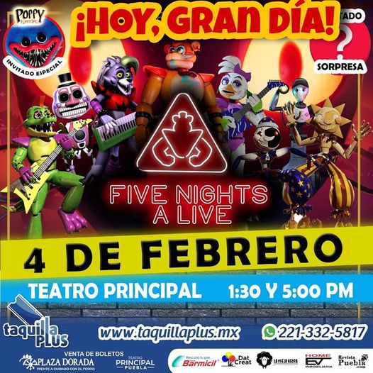 "Five nights a live", en Puebla, con la invitada especial "La Casa de Muñecas de Gabby", 4 de febrero 2023, Teatro Principal