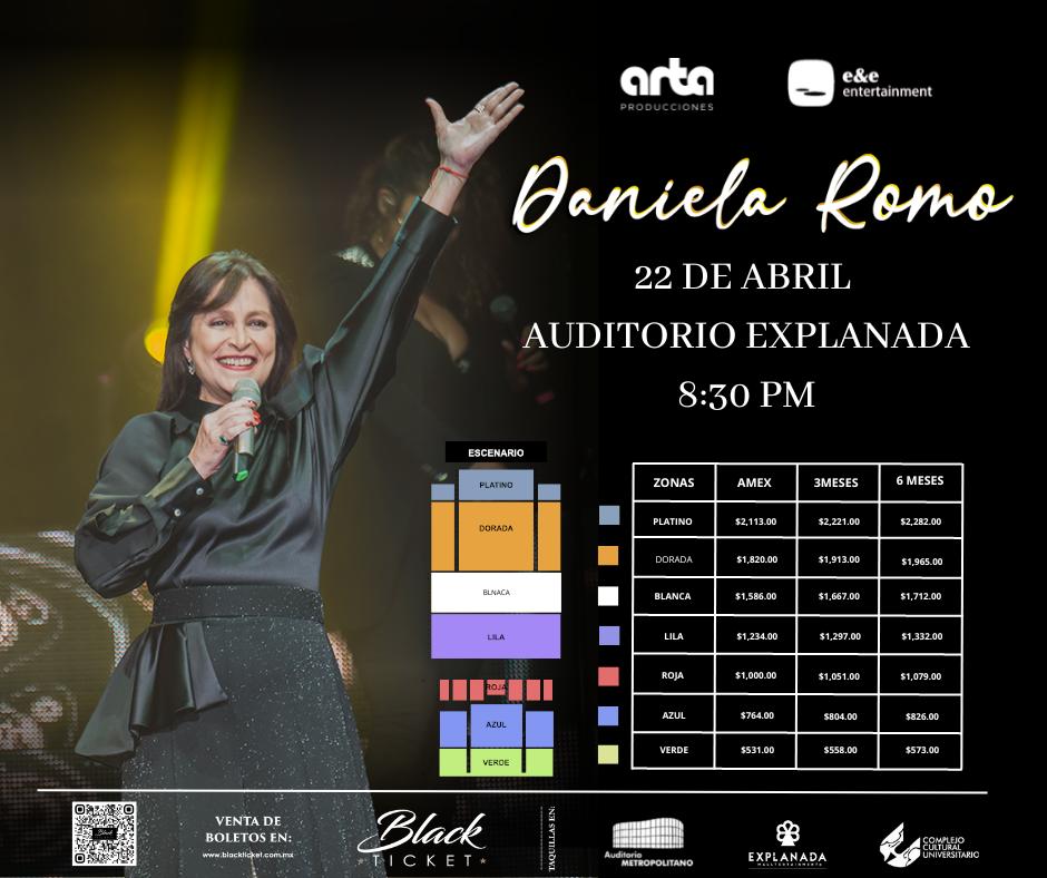 Daniela Romo, Puebla, 22 de abril de 2023, se presentará en el Auditorio Explanada, Cholula, a las 08:30 P.M.