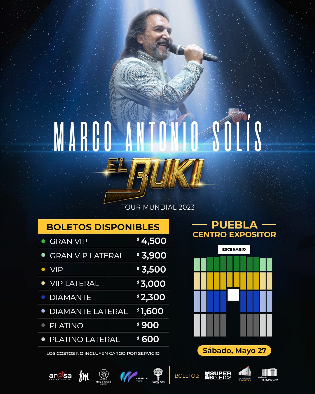 Marco Antonio Solís “El Buki”, Puebla, el 27 de mayo, de 2023, Centro Expositor. Precios de los boletos.