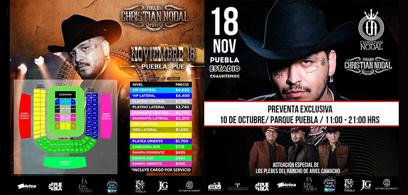 Por: Cortesía Christian Nodal, 35 mil personas en Puebla, 18 de noviembre 2022, Estadio Cuauhtémoc, a las 9:00 P.M. INFORMACION COMPLETA