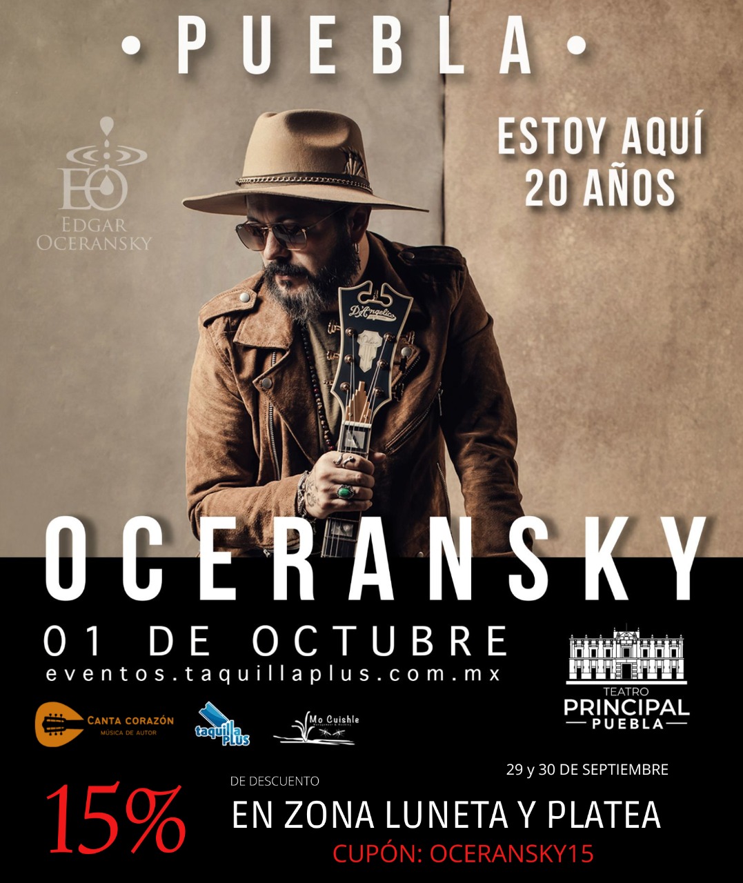 Por: Cortesía Oceransky, Puebla, 15% Desc. Luneta y Platea, sábado 01 de octubre de 2022, a las 08:30 P.M. Teatro Principal
