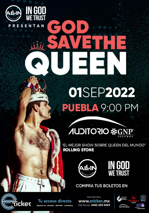 Dios salve a la reina, Tributo a Queen, Puebla, jueves, 1 de septiembre de 2022 (09:00 P.M.)