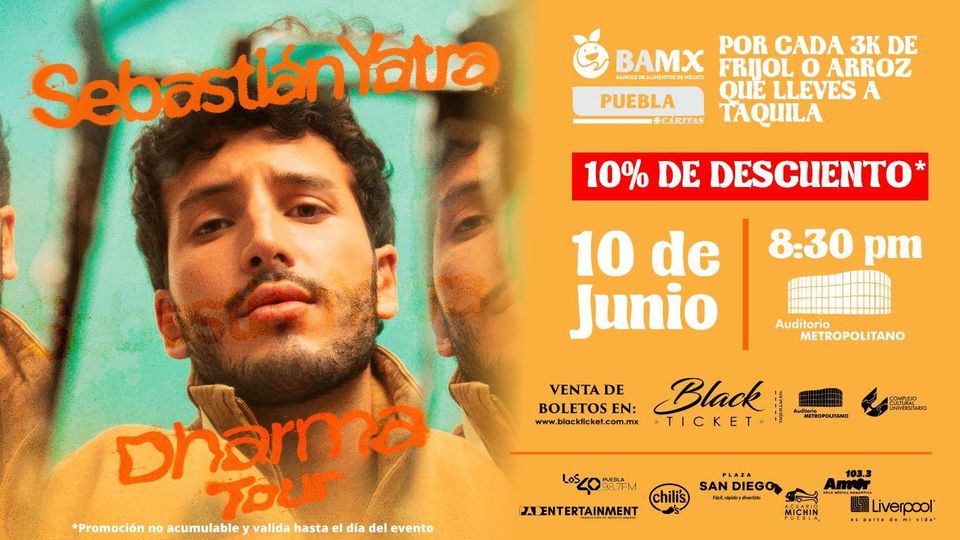 Sebastián Yatra, “Dharma Tour“. Descuento 10% , Puebla, viernes 10 de junio de 2022 Auditorio Metropolitano.