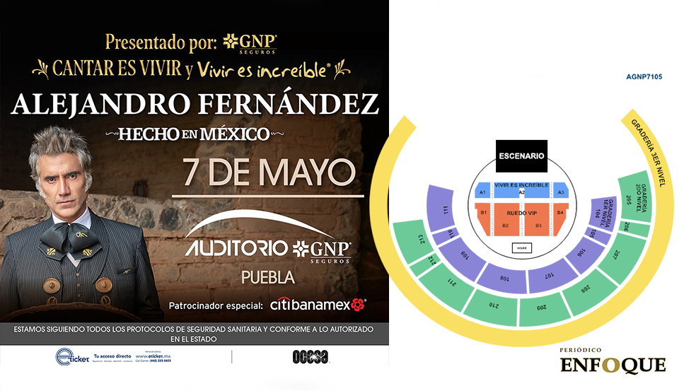 Alejandro Fernández, Puebla, sábado, 07 de mayo de 2022 Auditorio GNP Seguros, a las 09:00 P.M.