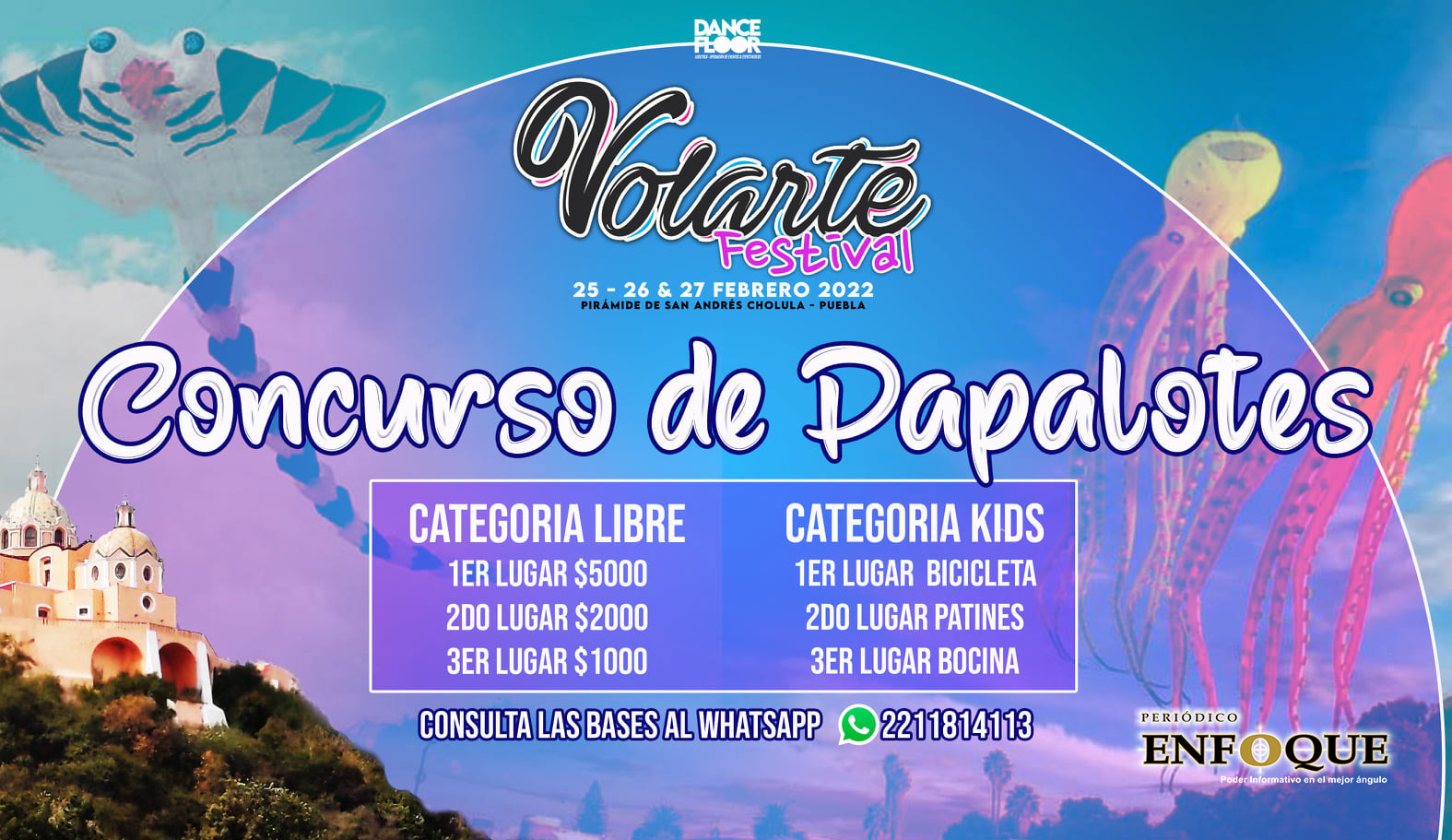 Volarte festival, concurso de papalotes, 25, 26 y 27 de Feb, 2022, San Andrés Cholula, Puebla, entrada gratis