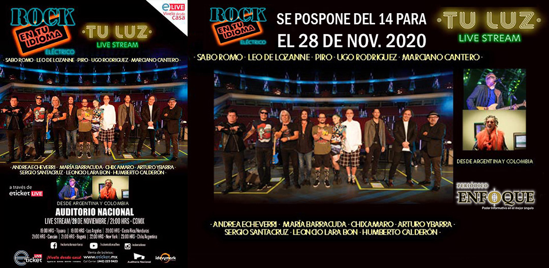 Rock En Tu Idioma Eléctrico “Tu luz” live stream desde el Auditorio Nacional, se pospone del 14 para el 28 de Nov. 2020