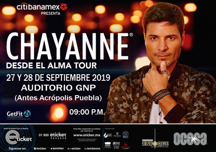 Chayanne “Desde el Alma Tour”, Puebla, 27 y 28 de Sep. 2019, Auditorio GNP, antes Acrópolis