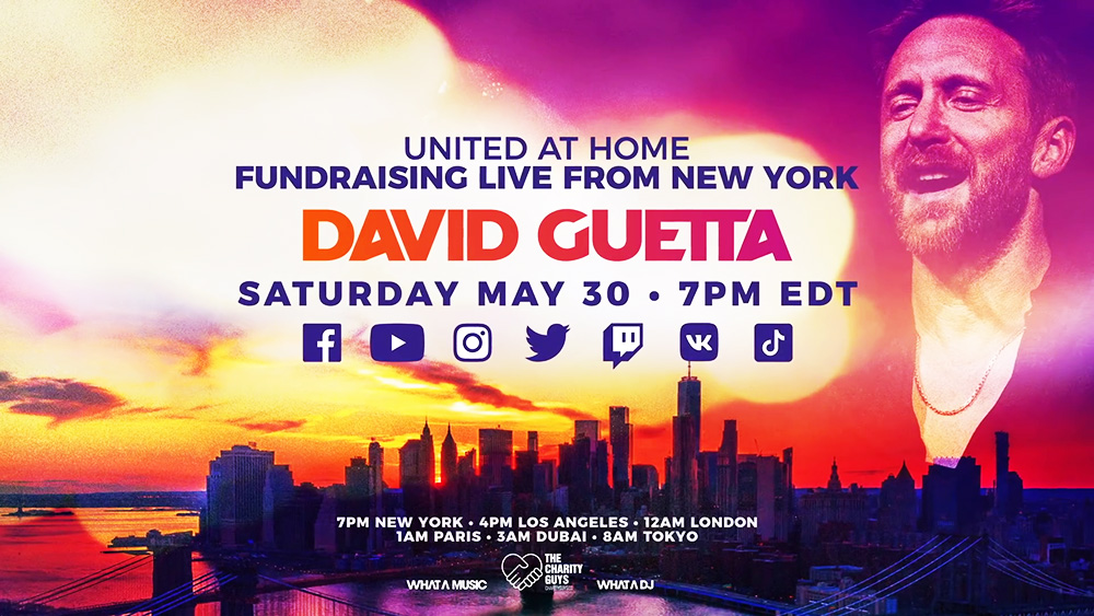 Foto: Cortesía David Guetta, Unidos en casa, Recaudación de fondos en vivo desde New York City. Sábado, 30 de mayo de 2020, on line
