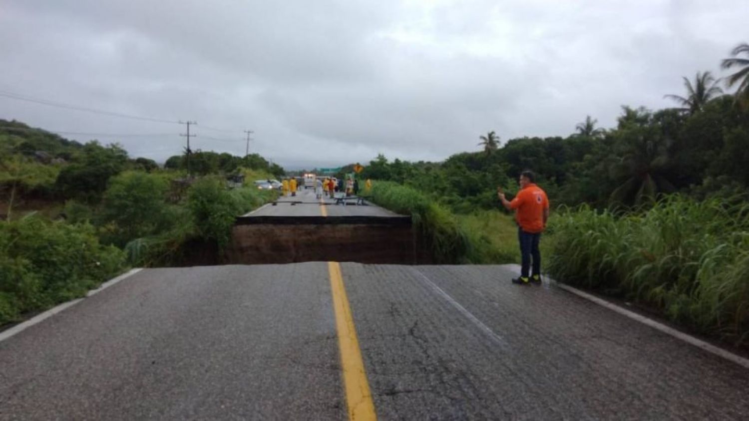 “Se registra corte sobre la carretera federal Acapulco-Zihuatanejo, cerca del puente de Cuajilote, municipio de Tecpan de Galeana. Extreme medidas de precaución, personal de @PC_Guerrero delimita la zona de riesgo”, detalló Protección Civil del estado de Guerrero, quien subió algunas fotografías del socavón.