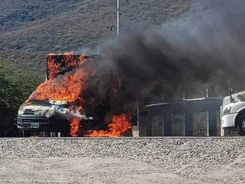 Una unidad de carga fue incendiada y quedó atravesada en el kilómetro 23, en los carriles con sentido a Colima.