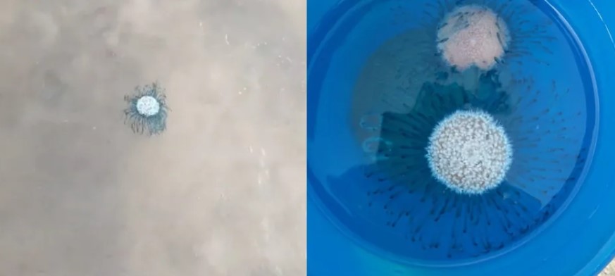 Por: Cortesía Se logran ver medusas azules en "forma de coronavirus" en playa Miramar de Ciudad Madero