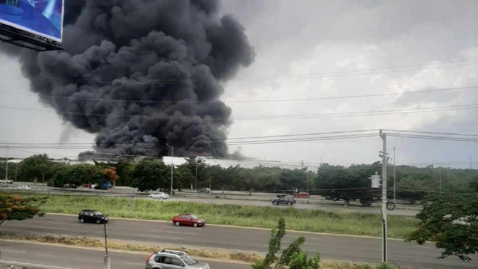 Incendio consume fábrica en la carretera Mérida-Progreso, miles de personas son evacuadas