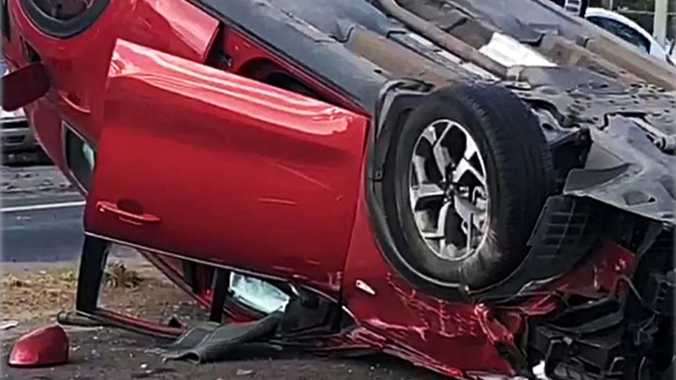 Madre e hija sobreviven tras volcadura de auto en Periférico de Nuevo León