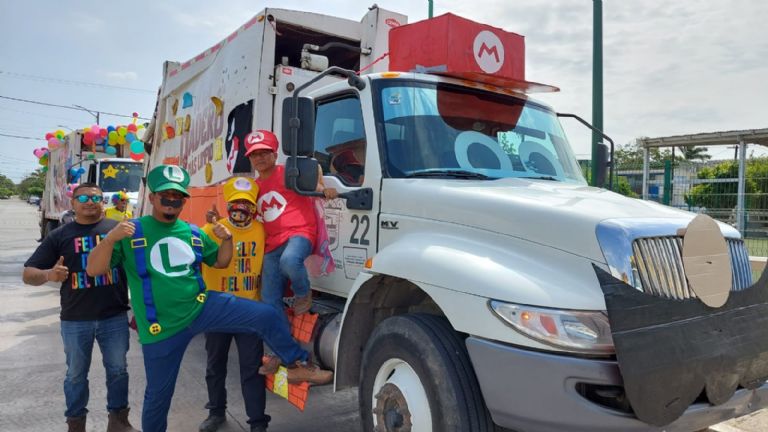 Trabajadores de limpieza se disfrazan de Mario Bros y regalan dulces a los infantes de Tamaulipas