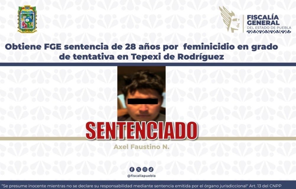 Foto: Cortesía FGE obtuvo sentencia de 28 años contra un masculino por feminicidio en grado de tentativa en Tepexi de Rodríguez