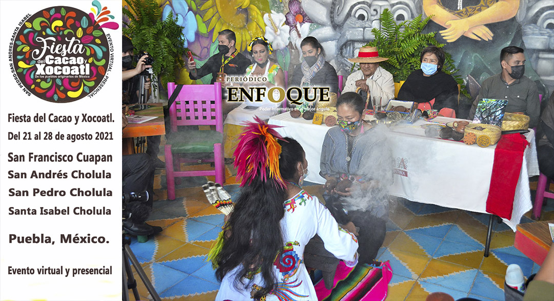 Fiesta del Cacao y Xocoatl. De los pueblos originarios. Del 21 al 28 de agosto de 2021, San Francisco Cuapan, San Andrés Cholula, San Pedro Cholula y Santa Isabel Cholula, Puebla, México. Programa de los talleres y actividades presenciales y virtuales. Habrá productores de Cacao de los estados de Chiapas, Oaxaca y Tabasco, vendiendo sus productos en diferentes lugares como; El Jardín Etnobotánico en San Andrés Cholula o Casa Caballero, en San Pedro Cholula.