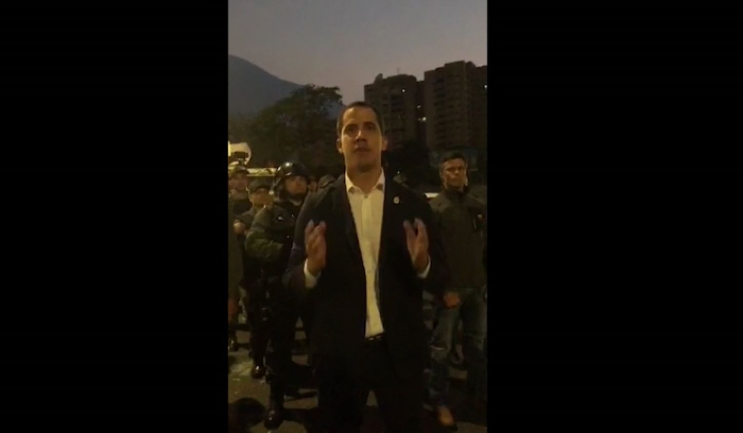 Acompañado de varios uniformados armados, Guaidó afirmó en un mensaje difundido a través de Twitter que soldados valientes (...) apegados a la Constitución han acudido a nuestro llamado.