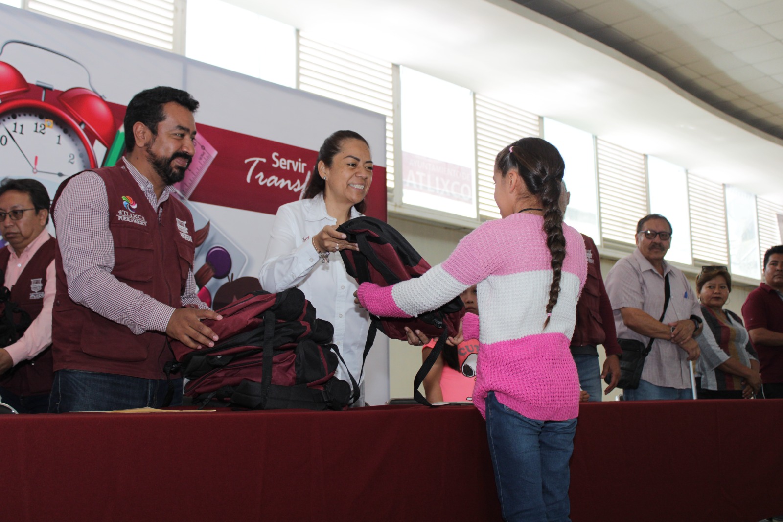 Atlixco, Pue.- Reafirmando su compromiso con la educación y en apoyo a la economía de las familias atlixquenses, por segundo año, la presidenta municipal de Atlixco, Ariadna Ayala entregó kits escolares a estudiantes de nivel básico de instituciones públicas.