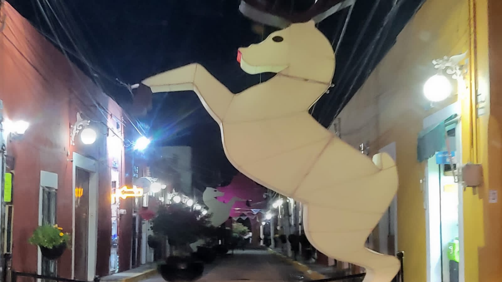 Dos renos juntos al final del callejón Constitución, muy cerca del zócalo, del Palacio Municipal y de la Parroquia de la Natividad. Y de frente al Ex Convento El Carmen.