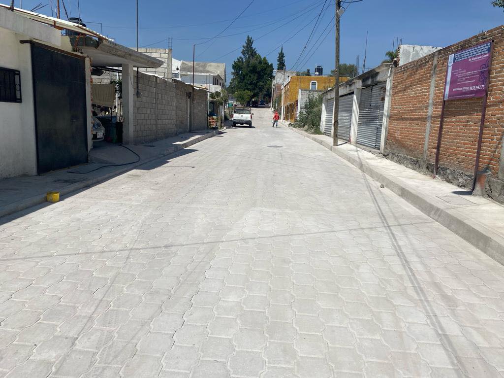 La pavimentación de la calle 5 Oriente de la localidad de Juan Uvera, cuenta con más del 96% de avance, donde se intervinieron 633.38 metros cuadrados con adoquín, guarniciones y señalamiento; en tanto, en calle Prolongación 3 Sur de la colonia Francisco I. Madero, después de que vecinos solicitaron por muchos años el mejoramiento de esta vialidad, la comuna realizó trabajos de adoquinamiento en 1,216.21 metros cuadrados de calle, donde además se colocaron luminarias solares, acciones que tendrán una inversión total de 2 millones 397 mil 979 pesos con 22 centavos.