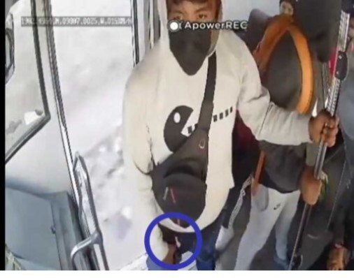 En el vídeo grabado por la cámara de vigilancia del transporte, se observa a un sujeto de sudadera blanca esperar junto al chofer, mientras sus compañeros despojan a los pasajeros de sus pertenencias.
