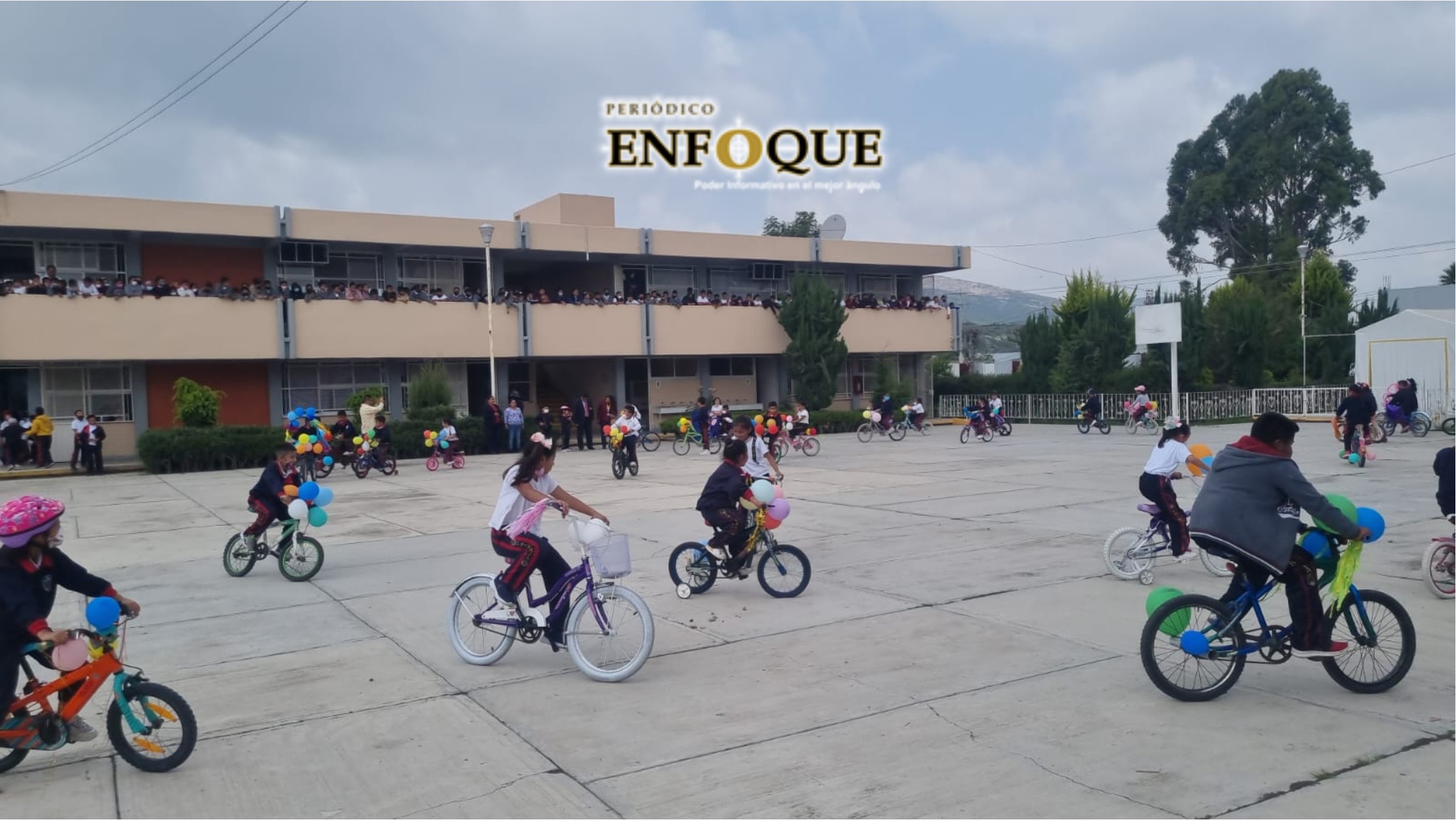 Tepeaca, Pue.- En el marco de la conmemoración internacional del “Día de la Bicicleta” que se celebra el 3 de junio, alumnos de la primaria del Centro Escolar General Miguel Negrete Novoa de Tepeaca, recordaron este día mediante un evento educativo, social y de concientización.