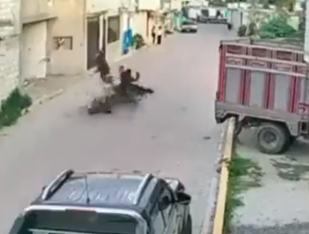 A través de redes sociales, se difundió cuando cámaras de vigilancia grabaron que dos conductores de motocicleta circulaban en sentido contrario por una de las calles de la comunidad sin precaución y sin equipo de protección, cuando de repente ambos chocan de frente y salen proyectados.