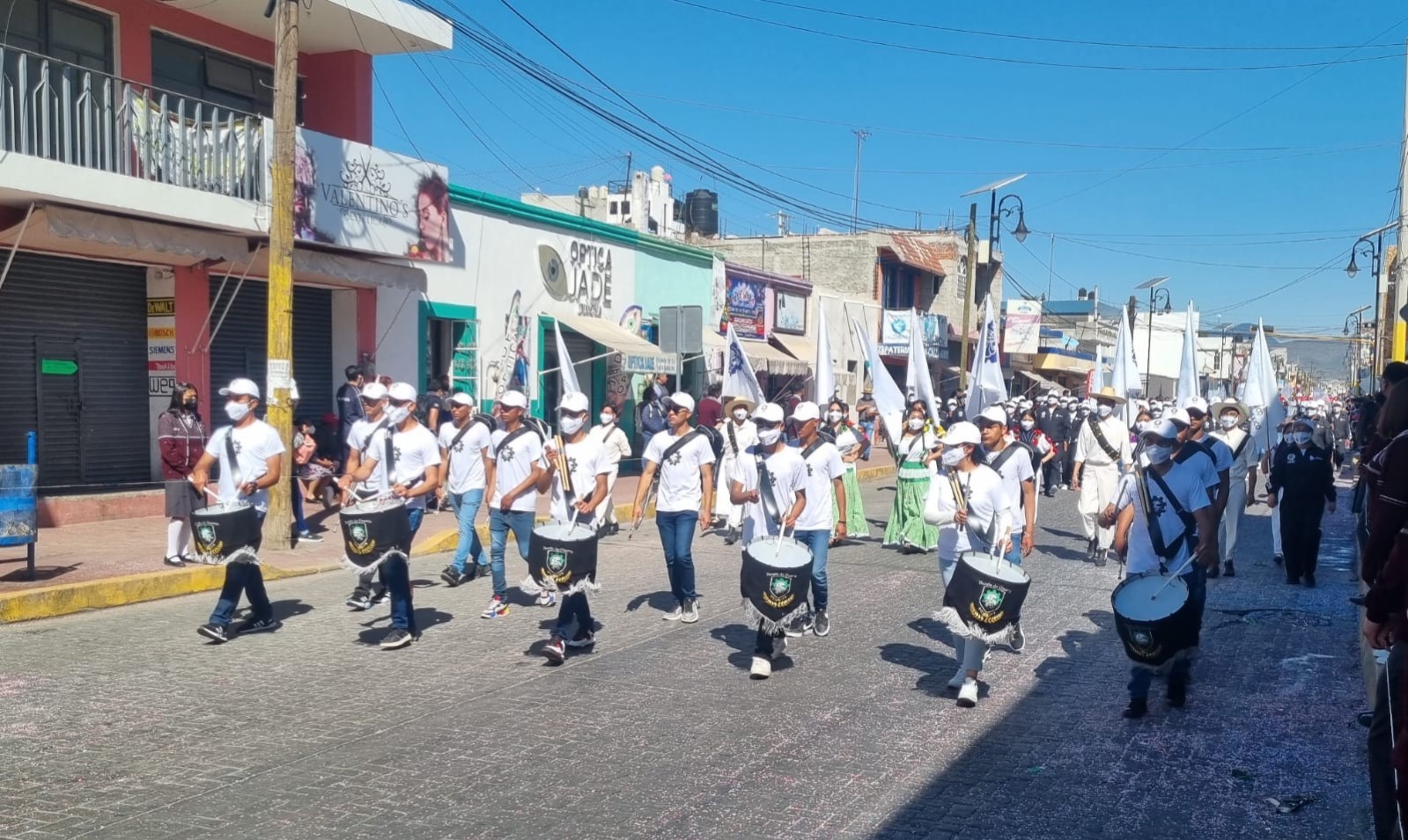 Durante el desarrollo del desfile conmemorativo, alumnos y maestros portaron vestuarios alusivos a la fecha, así como también se observó la demostración de carros alegóricos y contingentes distintivos a la ocasión, quienes recorrieron por calles principales de la cabecera.