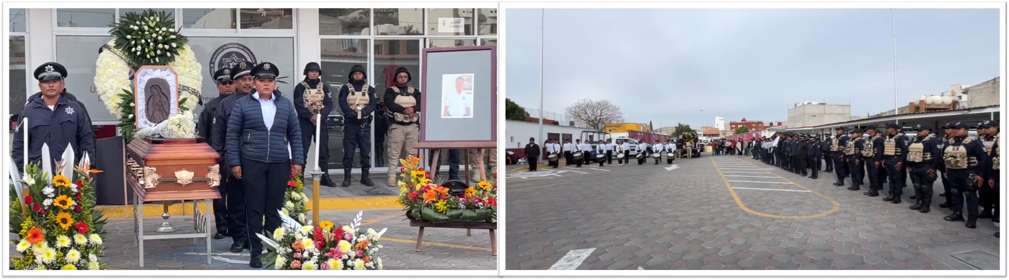 Con la presencia de familiares; del Presidente Municipal de Tepeaca, José Huerta Espinoza; de regidores; de directivos e integrantes de dicha corporación, se dieron cita en el estacionamiento del palacio municipal para despedir a un excelente y profesional elemento de seguridad pública, así lo describieron sus compañeros.
