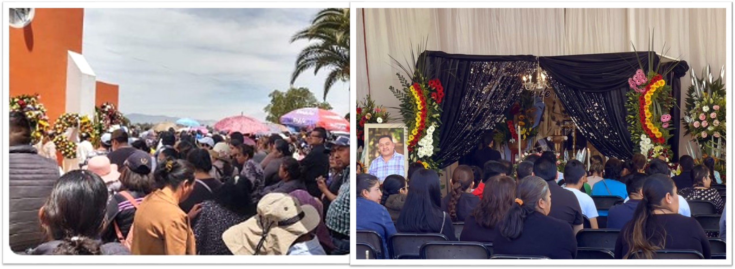 Fue que, con música de banda y aplausos, personas tanto externas como cercanas despidieron al candidato y se dieron cita en su negocio, donde fue asesinado, posteriormente a la iglesia y se realizó una misa de cuerpo presente, por último, al sepulcro donde descansarán sus restos.