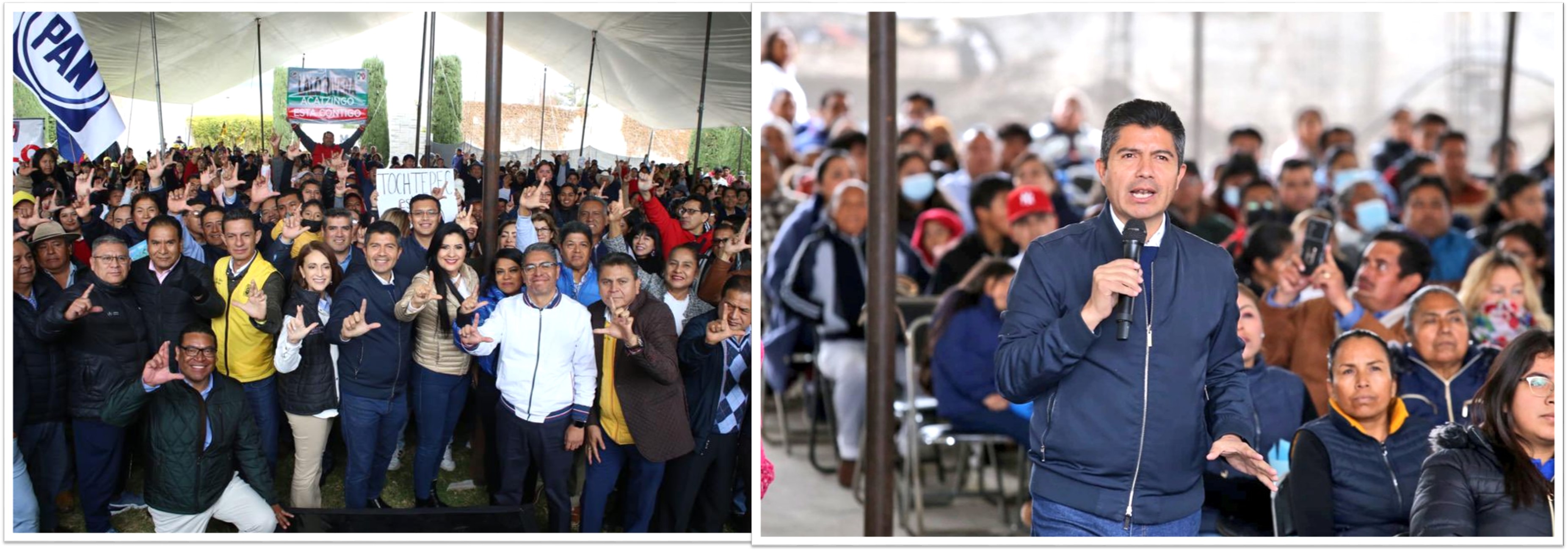 Ante personas provenientes de los municipios de Santa Clara Huiziltepec, Tepeyahualco, Santo Tomás Hueyotlipan, Acatzingo, Amozoc, Acajete, Tepatlaxco, Felipe Ángeles, Palmarito Tochapan, Cuautinchán, Tecali y Tepeaca, Rivera Pérez afirmó que la alianza que encabeza es poderosa y fuerte, pues hay experiencia para hacer una buena campaña y ganarla.