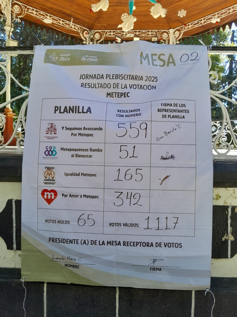 En Metepec, se reportó la ausencia de un padrón electoral, lo que permitió la votación sin restricciones. Sin embargo, estas situaciones no afectaron el desarrollo general del plebiscito, que fue calificado como de saldo blanco por el Consejo Municipal de Plebiscitos (CMP).
