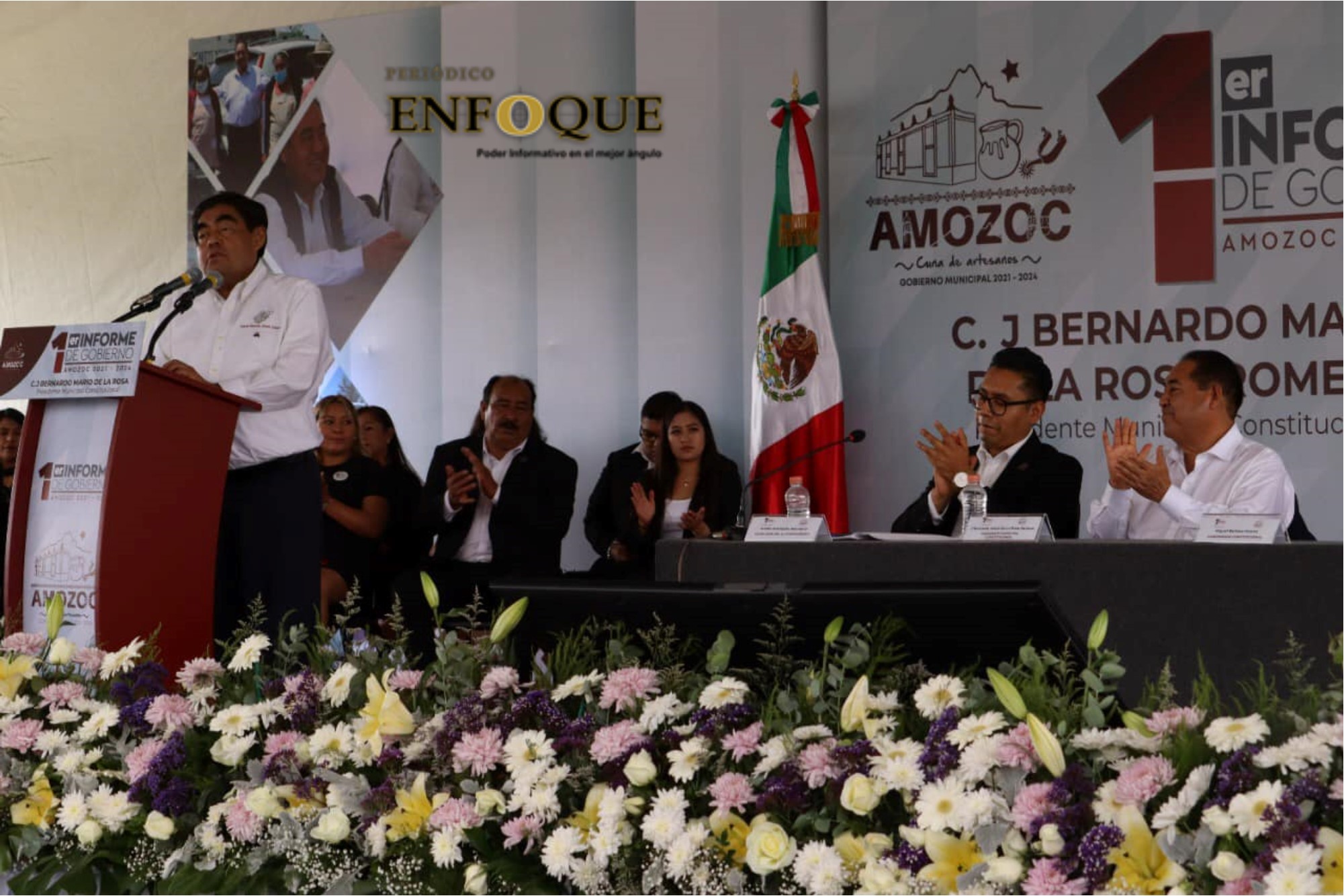 Amozoc, Pue.- Tras su primer informe de gobierno del alcalde de Amozoc, Mario de la Rosa Romero, el mandatario estatal Miguel Barbosa Huerta anunció la construcción de 32 aulas en diferentes instituciones educativas y la puesta en marcha de un sistema hospitalario en este municipio.
