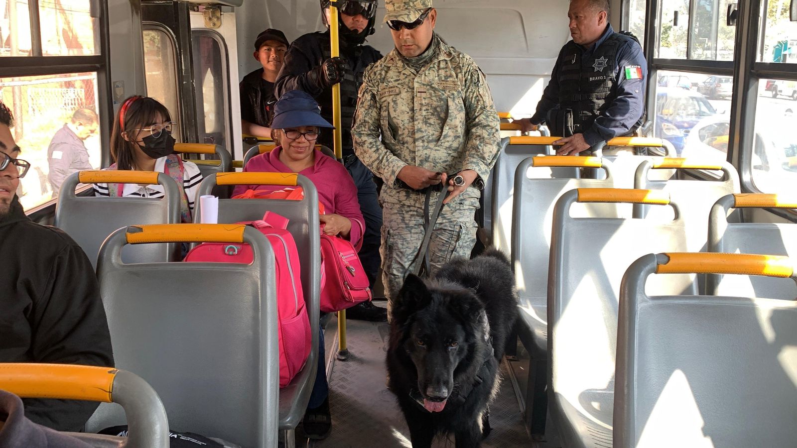 Dicho punto es un paso obligado para unidades del transporte público y rutas de pasajeros, por lo que se realizaron revisiones preventivas con el apoyo del Grupo Canino K-9, especializado en la detección de narcóticos y explosivos, con el objetivo de fortalecer la prevención del delito y brindar mayor seguridad a las y los usuarios.