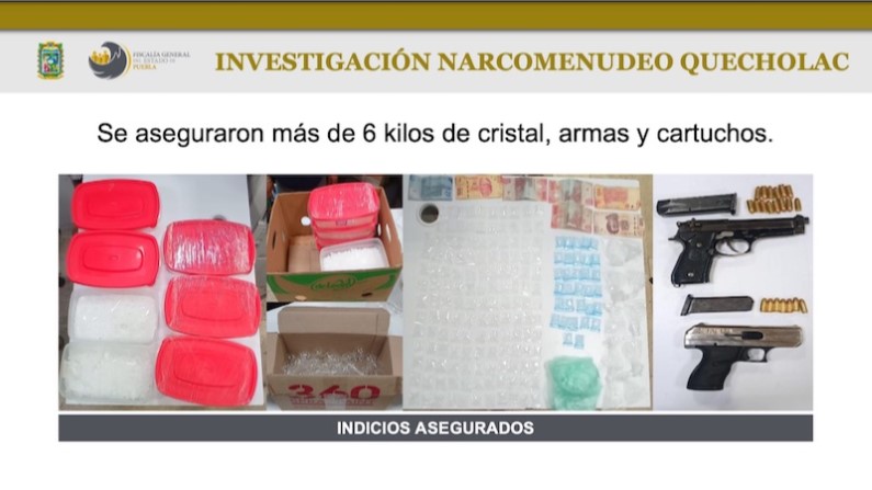 Cabe señalar que los detenidos tenían en su posesión seis kilos y 183 bolsas de la droga conocida como cristal, dos pistolas calibre 9 milímetros, dieciséis cartuchos útiles y dinero en efectivo, por lo que fueron puestos a disposición de las autoridades correspondientes para definir su situación legal.