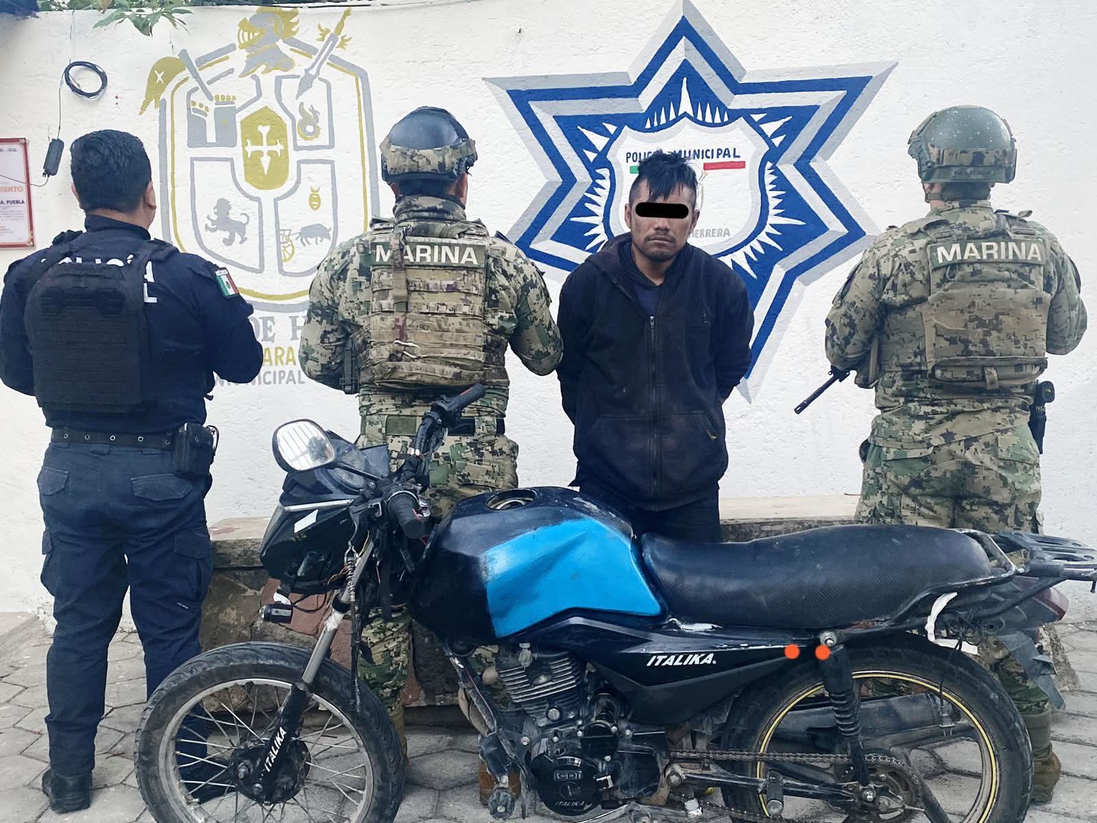 Tecali de Herrera, Pue.- Elementos de la Policía Municipal de Tecali de Herrera en coordinación con la Secretaría de Marina (SEMAR), realizaron la detención en flagrancia de un masculino por su probable participación en el delito de detentación de vehículo con reporte de robo en la cabecera municipal.