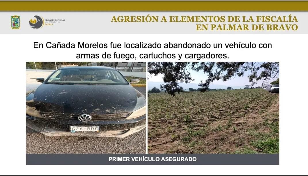 La dependencia señaló que el decomiso en Cañada Morelos, tuvo como resultado: un vehículo Jetta con 11 armas largas, 9 cargadores con 152 cartuchos, un radio de comunicación y un chaleco balístico; así como una camioneta Ford tipo Raptor del Estado de Veracruz con reporte de robo en Puebla y que coincide con las características de la camioneta en la que viajaban los agresores.