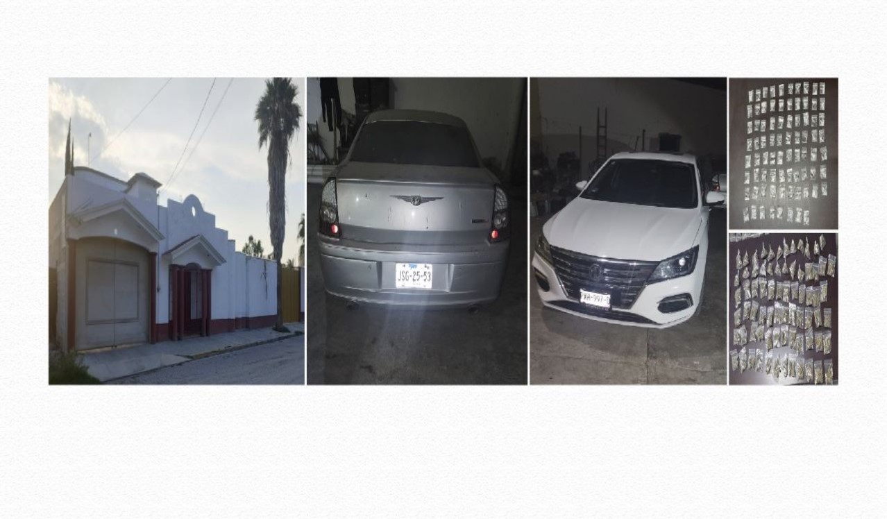 La vivienda, las unidades vehiculares y la droga están a disposición del Agente del Ministerio Público para continuar con los actos de investigación.