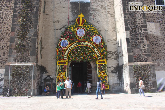 Posteriormente, la Virgen de los Remedios es llevada al exconvento franciscano, donde los floricultores de este municipio colocaron grandes y bellos arreglos florales así como arcos decorados con flores, imágenes religiosas, papel y demás elementos las entradas principales del inmueble católico.