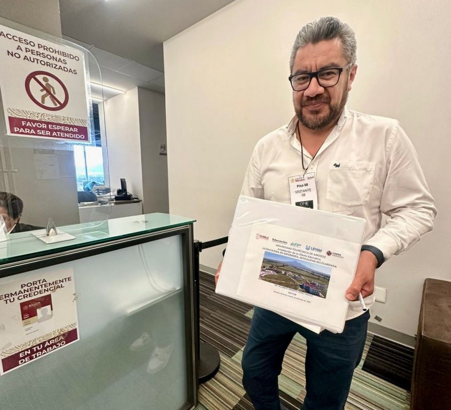 Amozoc, Pue.- El rector de la Universidad Politécnica de Amozoc (UPAM), Ricardo López Priego, entregó una carpeta de requisitos a la Dirección General de Universidades Tecnológicas y Politécnicas (DGUTYP) y a la Comisión Interinstitucional para la Formación de Recursos Humanos para la Salud (CIFRHS) con la finalidad de aperturar la Licenciatura en Enfermería.